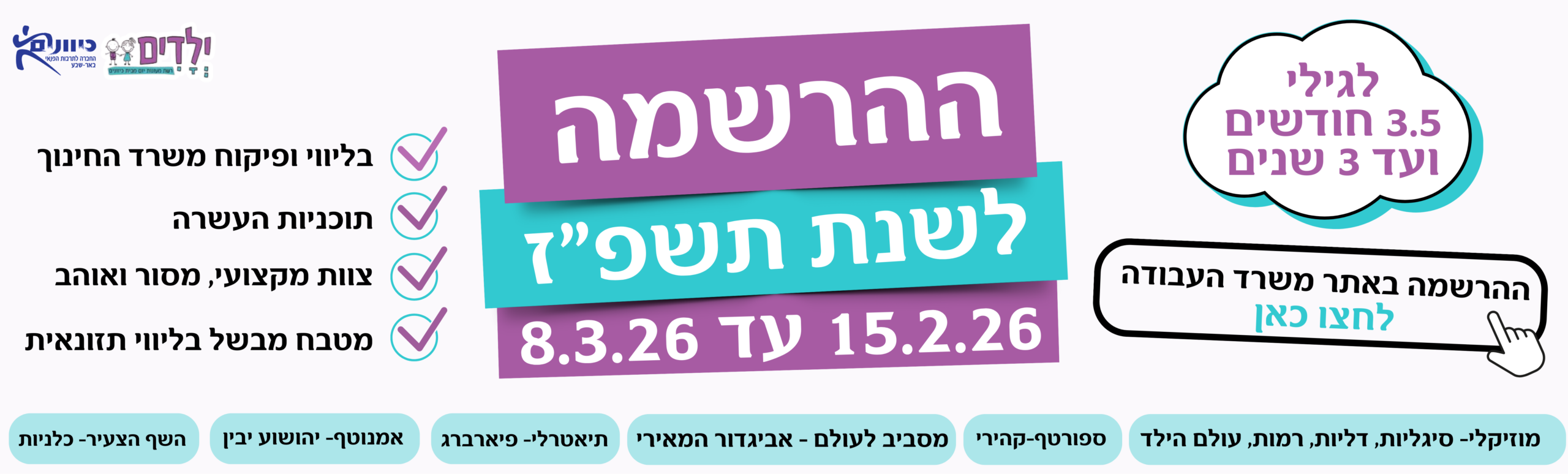 ההרשמה ובחירת המעון מתבצעת באתר משרד העבודה.