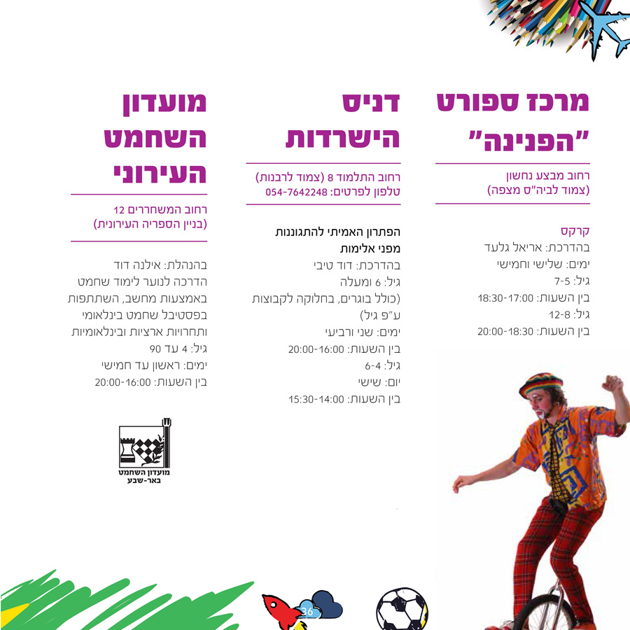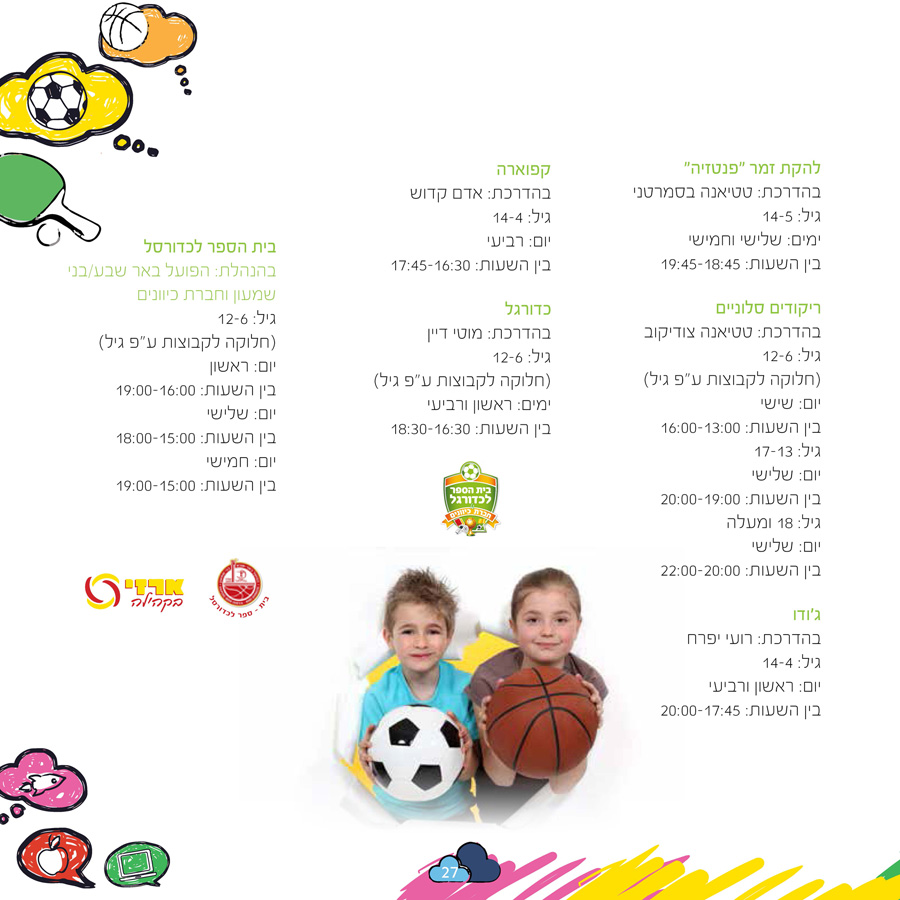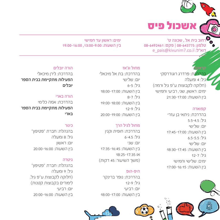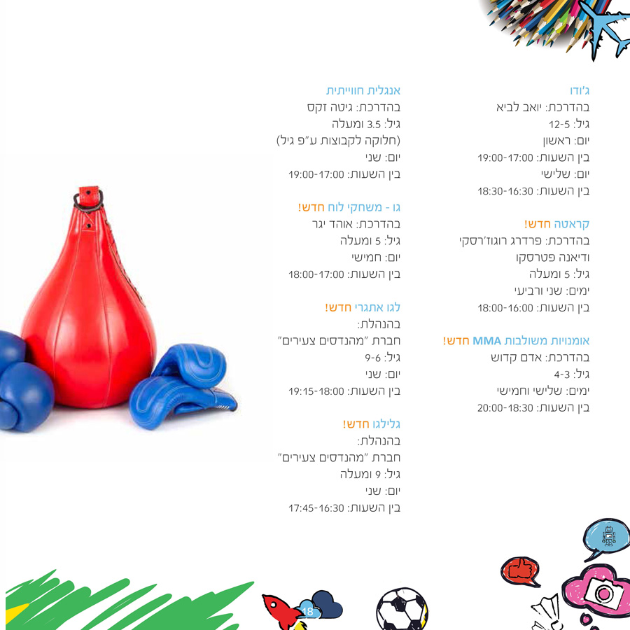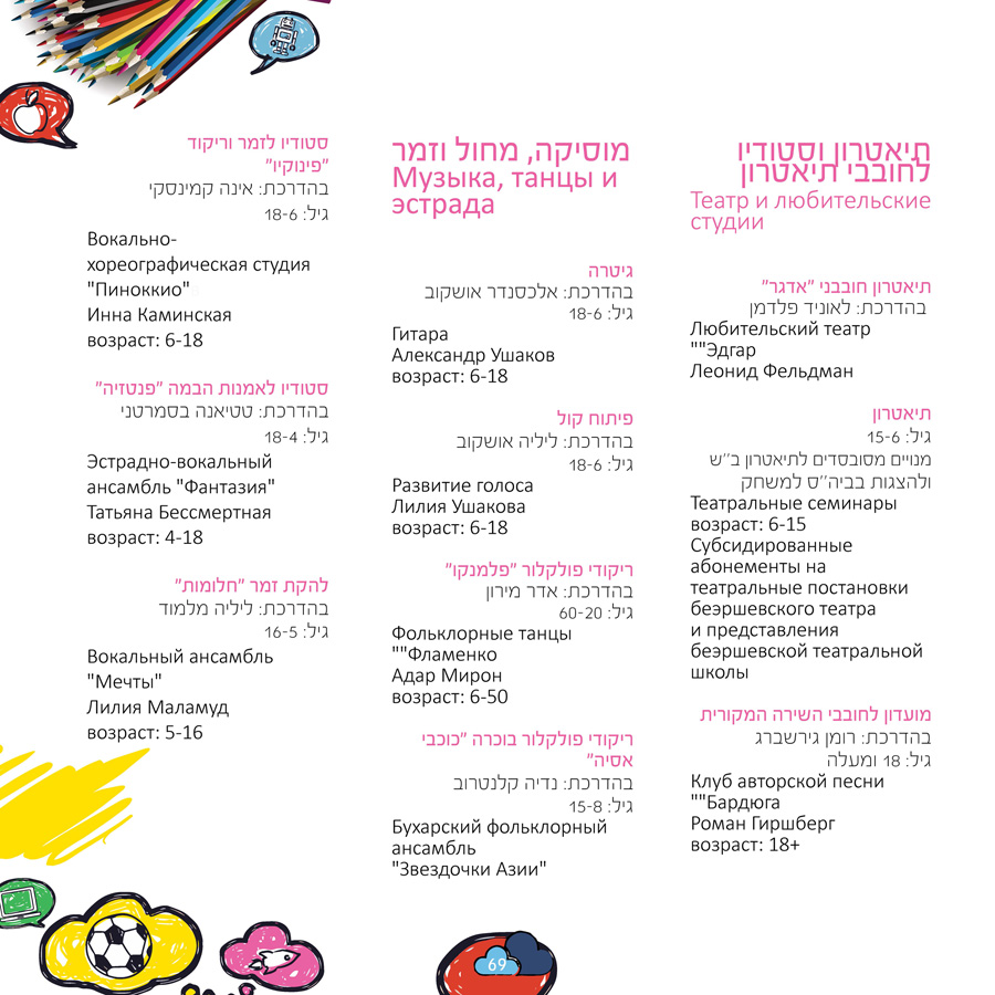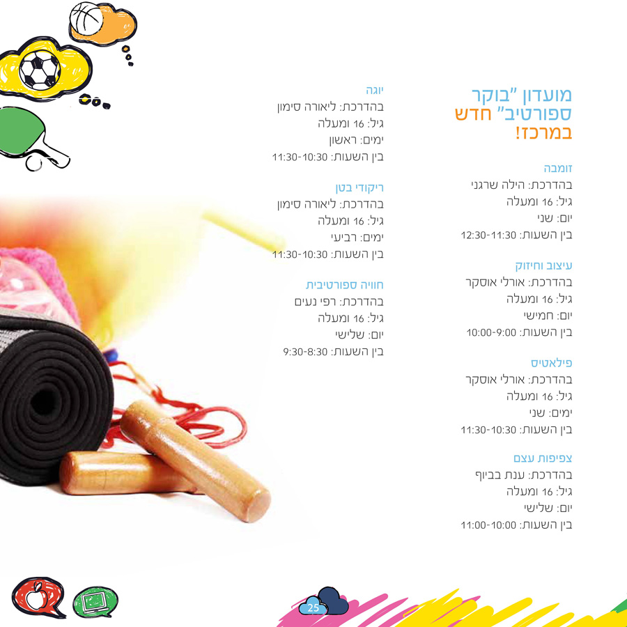 בחוברת שלפניכם תוכלו למצוא מידע מקיף על חוגים לילדים, נוער ומבוגרים במוקדים קהילתיים ברחבי העיר.
