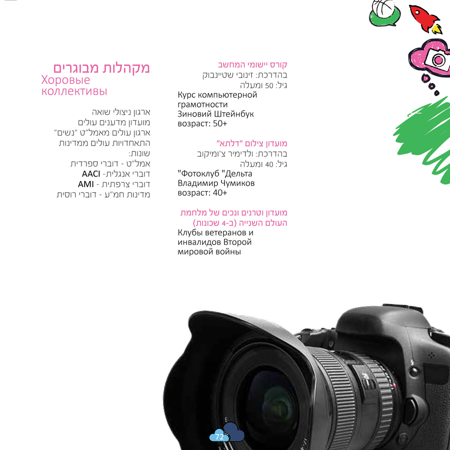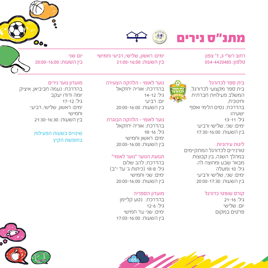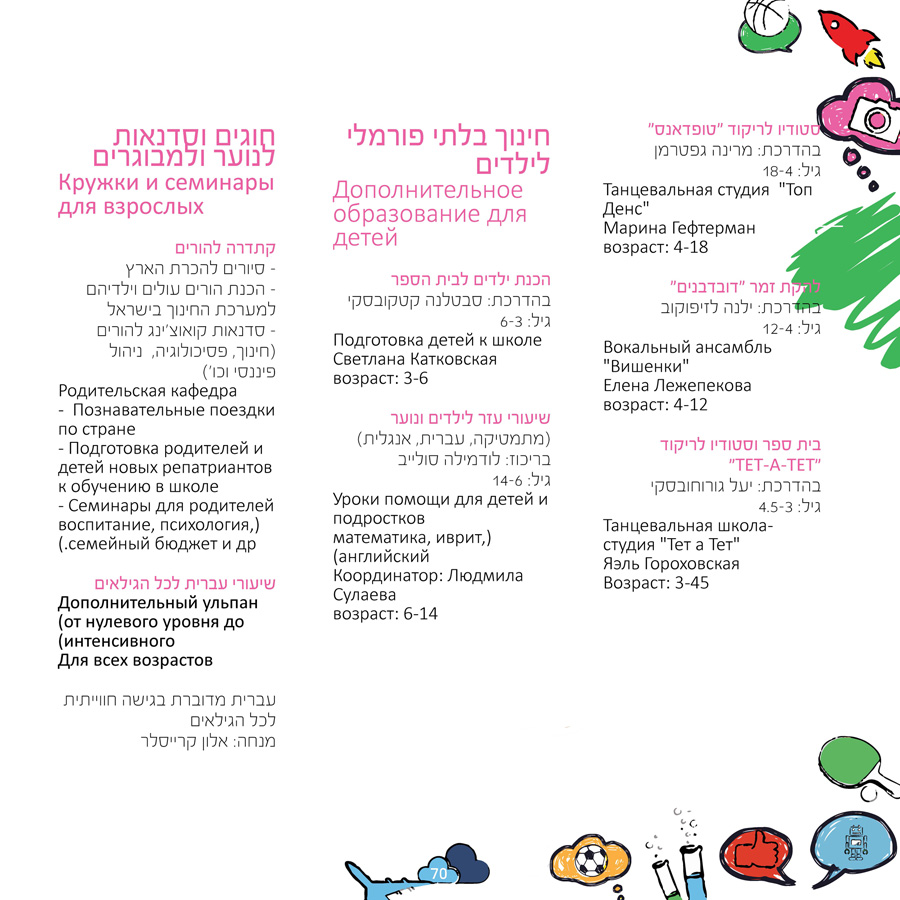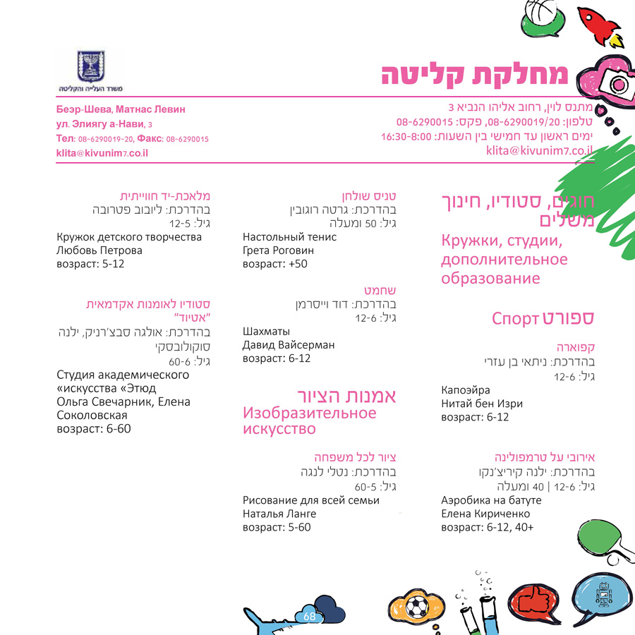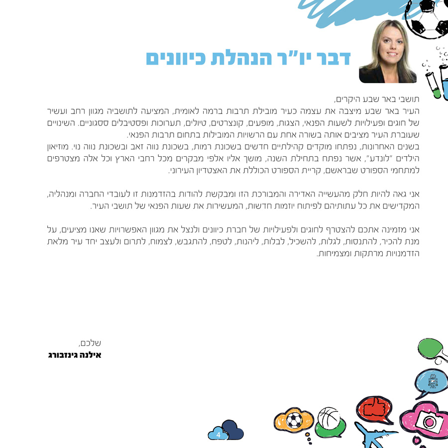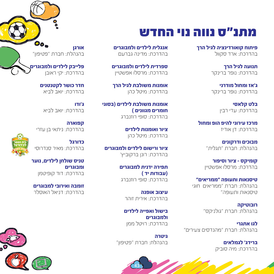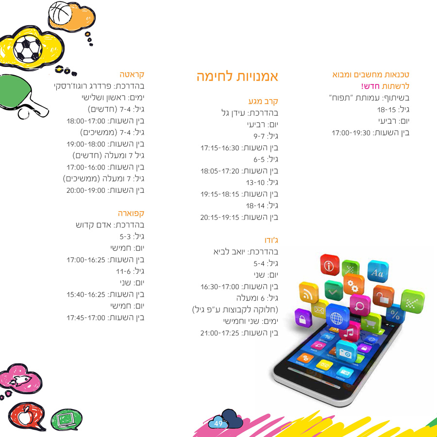 בחוברת שלפניכם תוכלו למצוא מידע מקיף על חוגים לילדים, נוער ומבוגרים במוקדים קהילתיים ברחבי העיר.